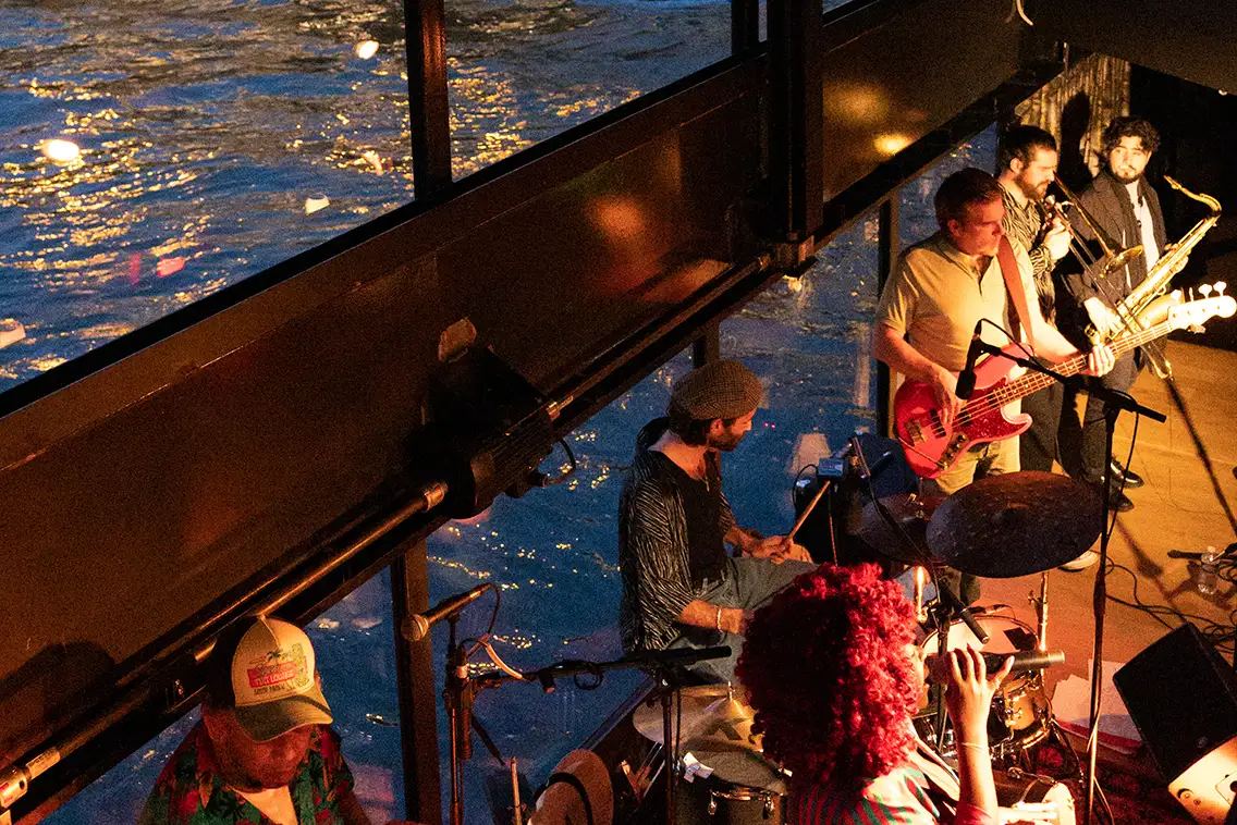 Le week-end, le brunch musical est devenu un rendez-vous incontournable : une carte généreuse, une ambiance décontractée, et toujours de la musique live à bord. En été, la grande terrasse à quai vous accueille au soleil ; en hiver, le pont supérieur lumineux et le club cosy offrent chacun leur atmosphère pour savourer Paris au chaud et au fil de l’eau.
